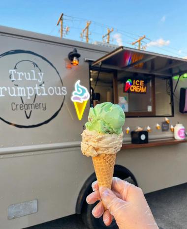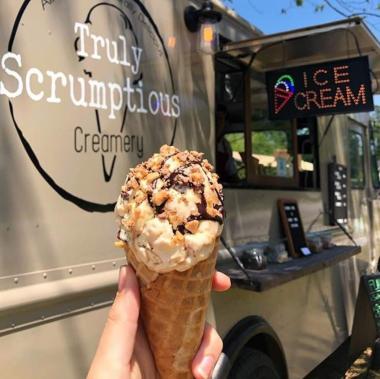 Truly Scrumptious Creamery is a vintage-style ice cream experience served from our charming pastel truck, Dottie!
